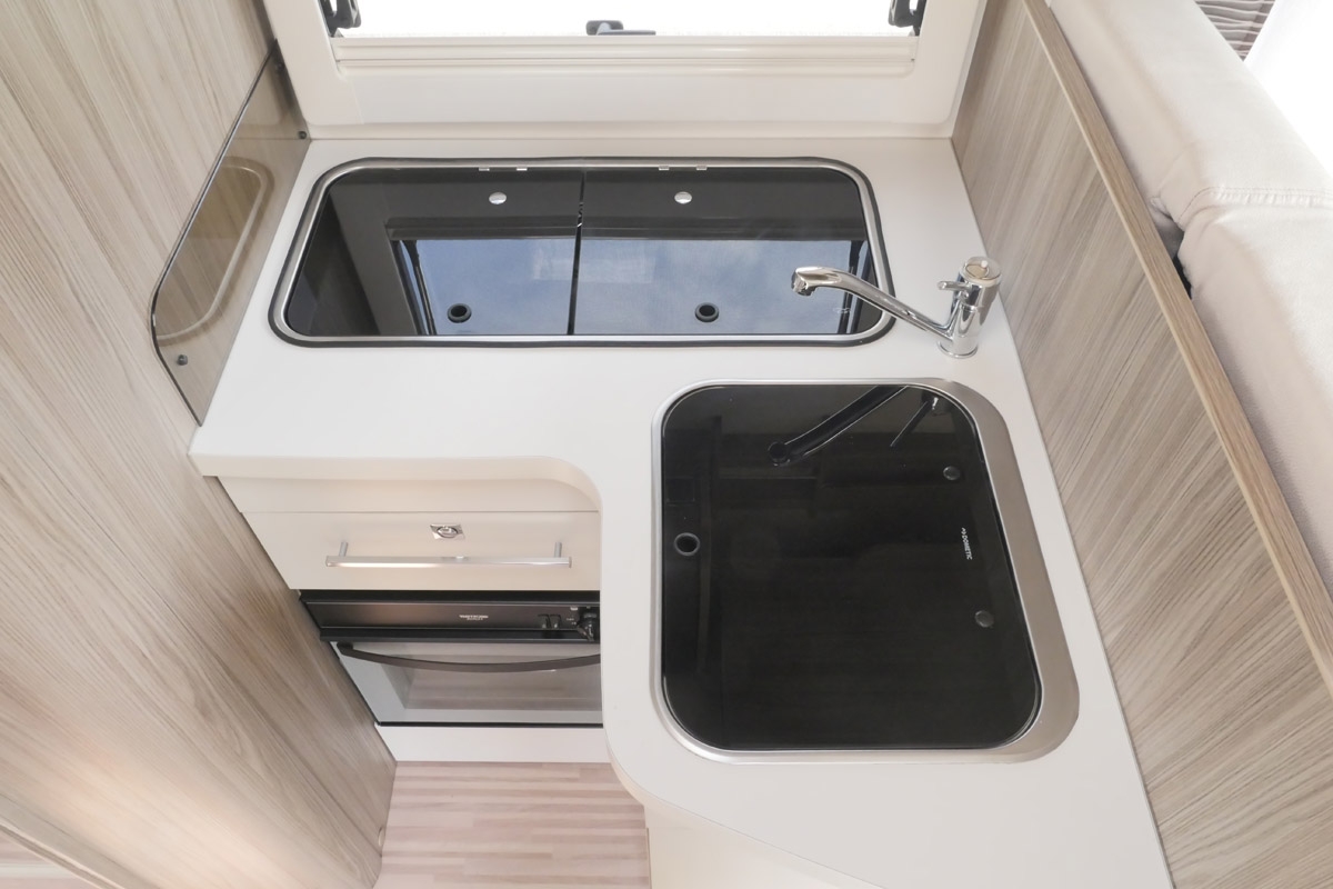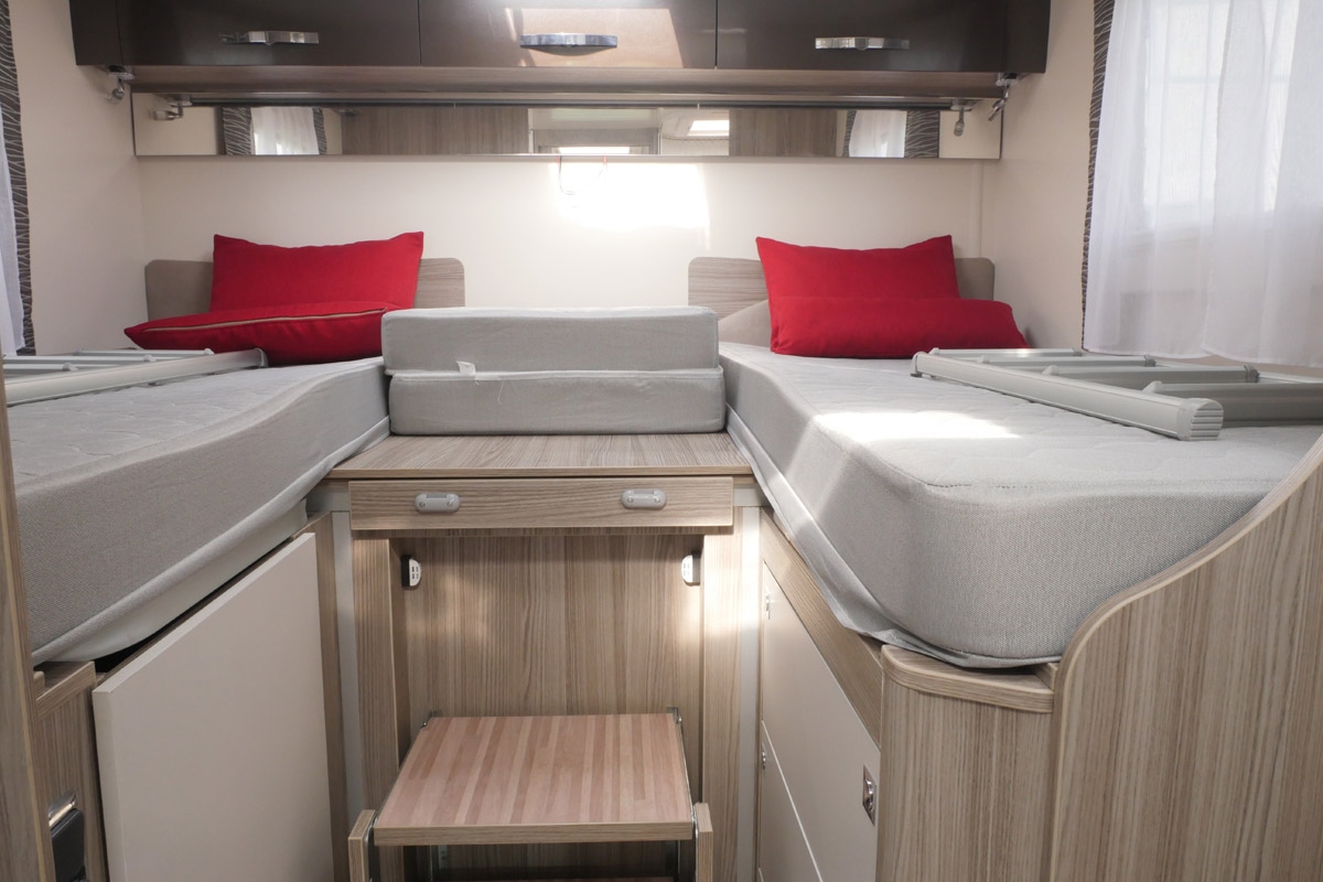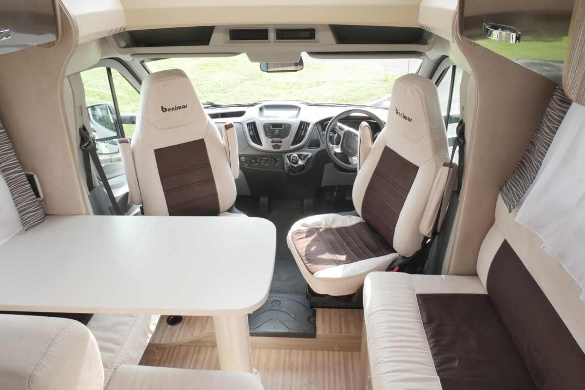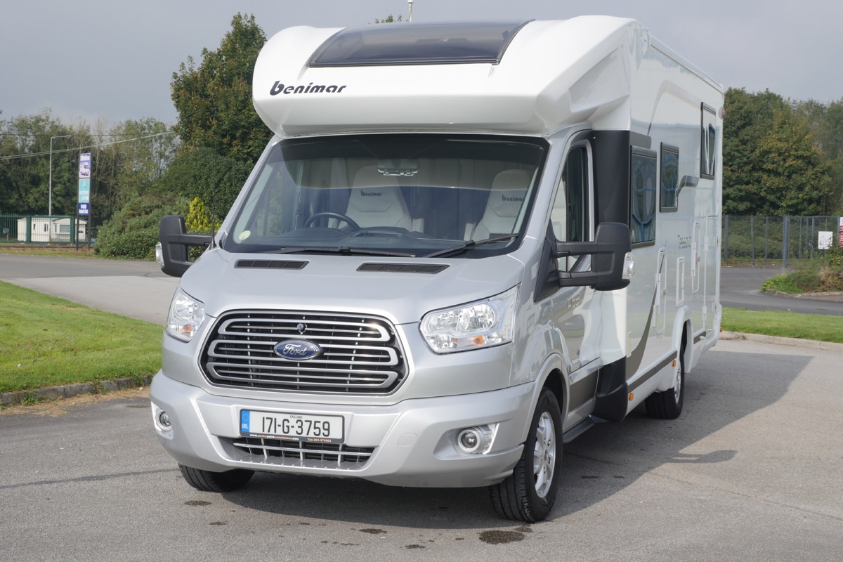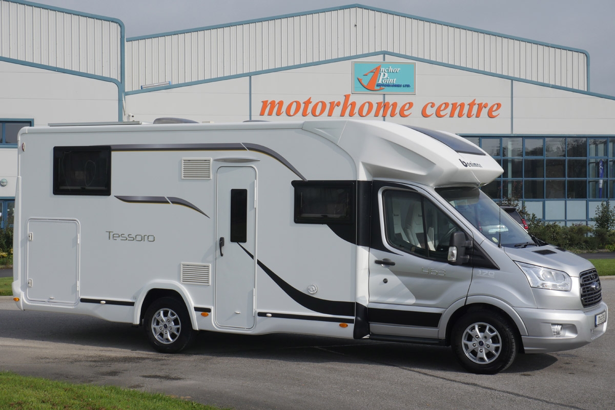 This 'as new' 2017 Benimar Tessoro 463 comes to us in pristine condition. An extremely practical and functional layout with two rear single beds it has 4 berths/4 belts suitable for couples and small families. It comes on the powerful and Fuel efficient Ford Euro 6, fully loaded with driver & passenger airbags, cruise control, ABS brakes, ESC and Hill Start Assist. Visually stunning and currently on display at our showrooms in Birdhill, it offers comfort with multi positional drop down bed over the front lounge. The two rear singles can be converted into a huge double with ample garage storage under. For your touring comfort there is adjustable steering wheel, leather steering and gears knob and a large over cab skylight, while the chrome instrument panels give a distinctive sporty look.